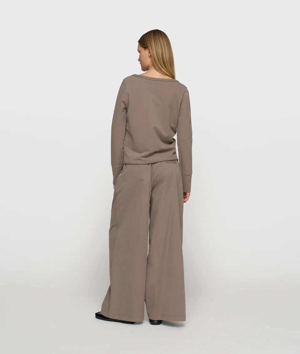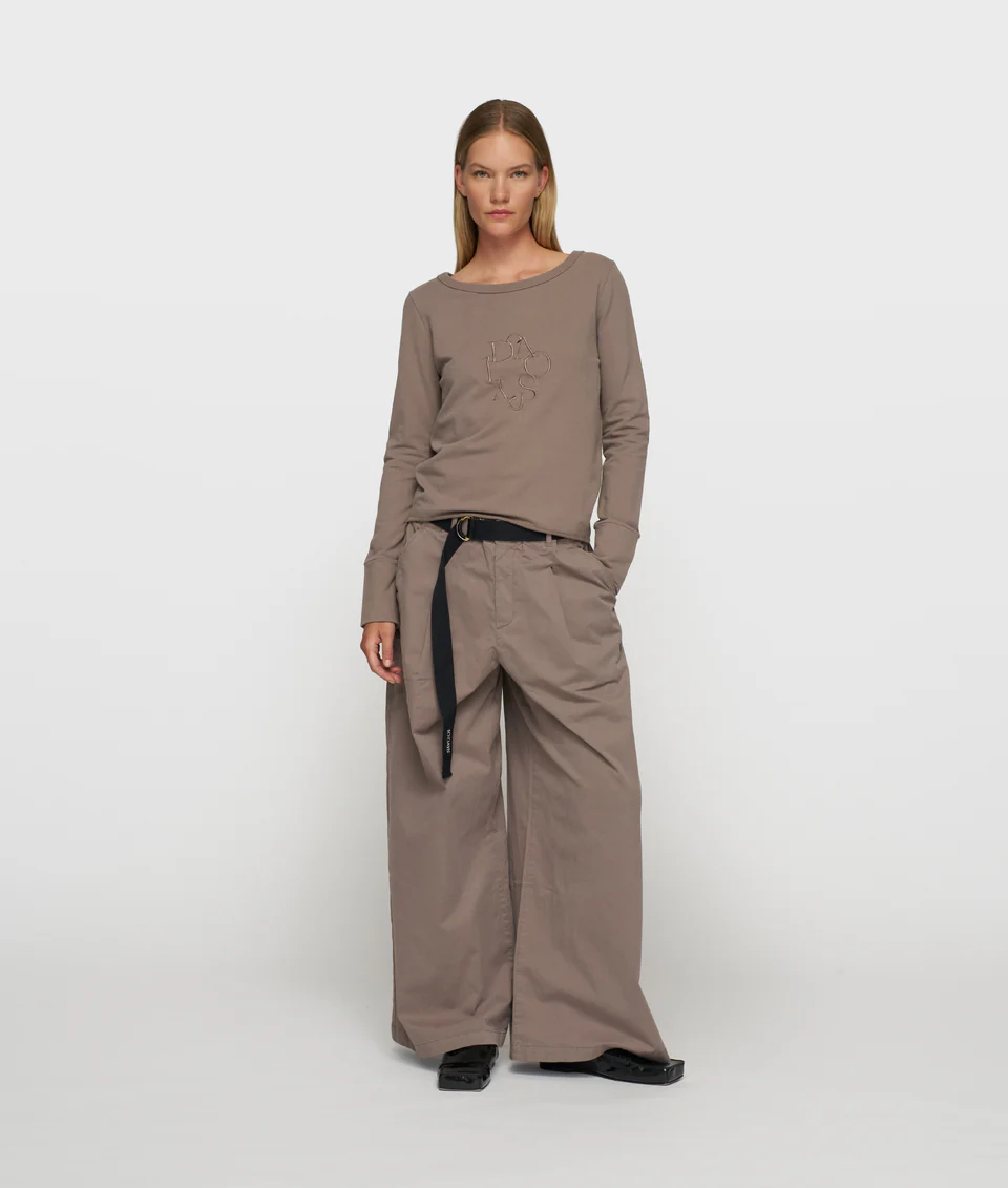 10 Days, taupe sweater met ronde hals en lange mouw. De sweater heeft een geborduurd logo op het voorpand.