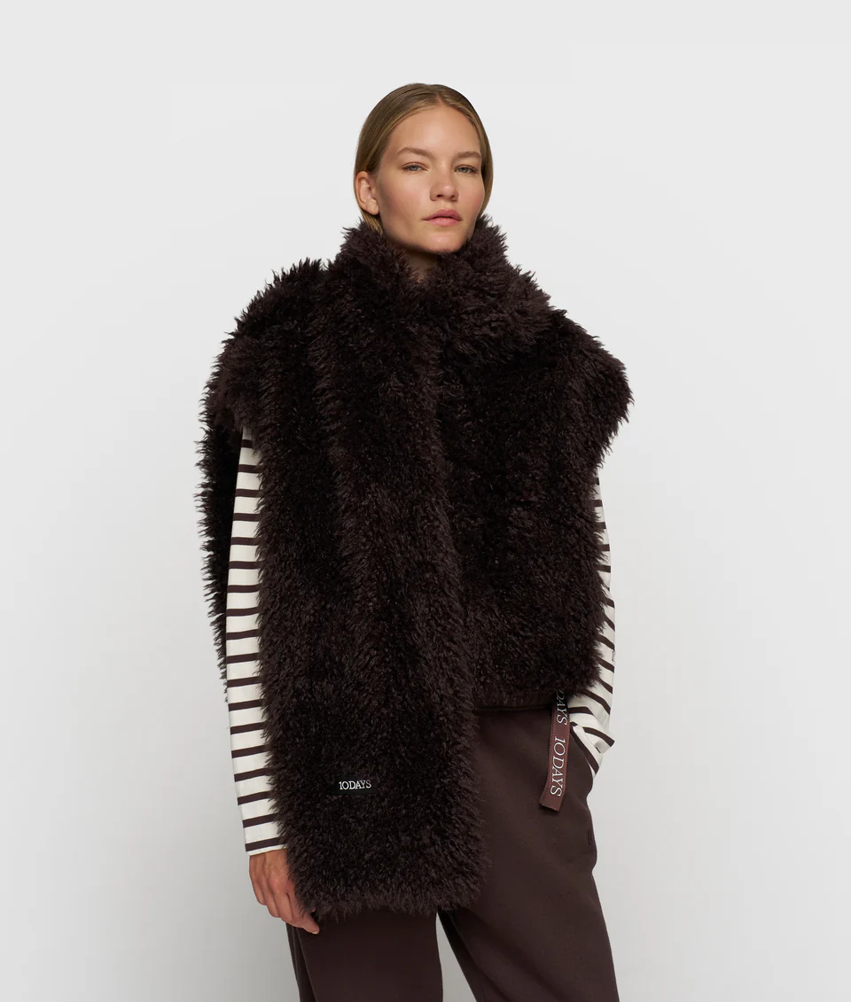 10 Days, aubergine, harige sjaal met fleece binnenkant. De sjaal is voorzien van een doorsteek opening. Afmeting 210 cm x 25 cm.