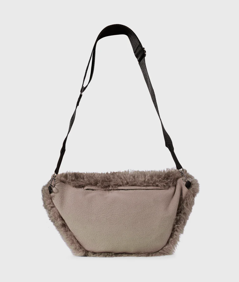 10 Days, taupe, harige tas met ritssluiting en lange verstelbare schouderband. De tas is geheel gevoerd en heeft diverse opbergmogelijkheden aan de binnenzijde. De tas heeft nog een extra vak met ritssluiting aan de achterkant van de tas.