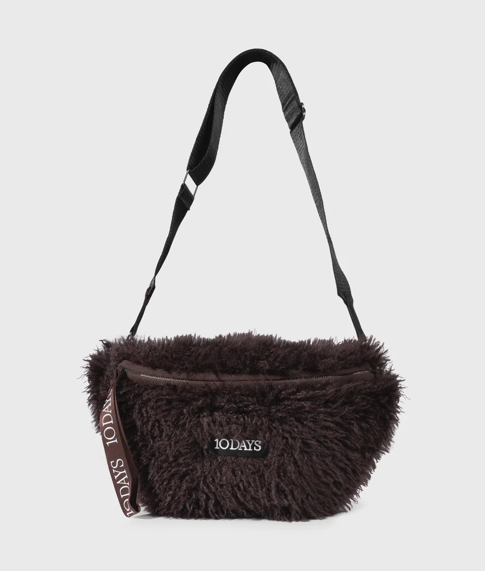 10 Days, aubergine, harige tas met ritssluiting en lange verstelbare schouderband. De tas is geheel gevoerd en heeft diverse opbergmogelijkheden aan de binnenzijde. De tas heeft nog een extra vak met ritssluiting aan de achterkant van de tas.