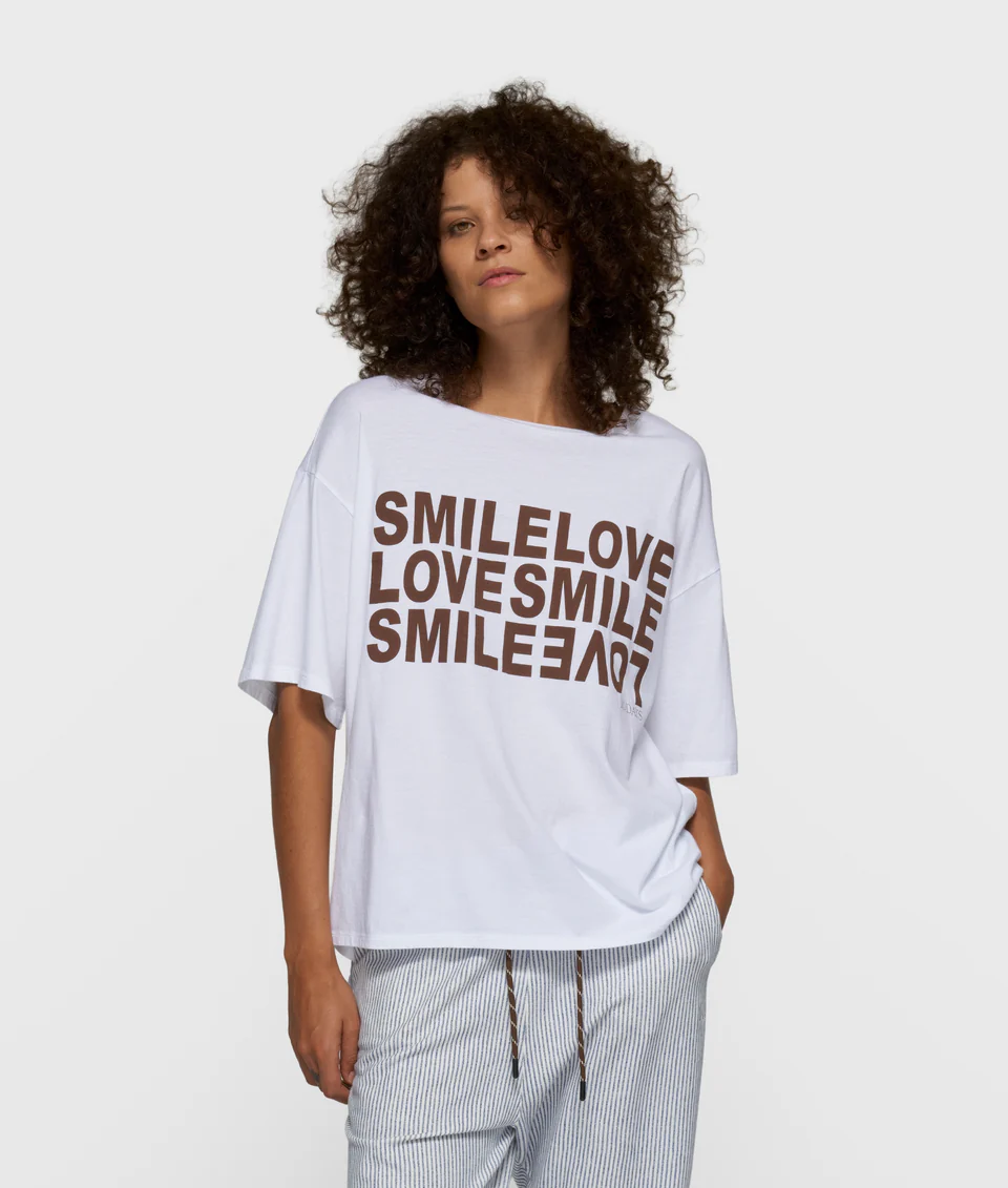 10 Days, wit shirt met ronde hals en korte mouw. Het shirt heeft een bruine tekst op het voorpand.