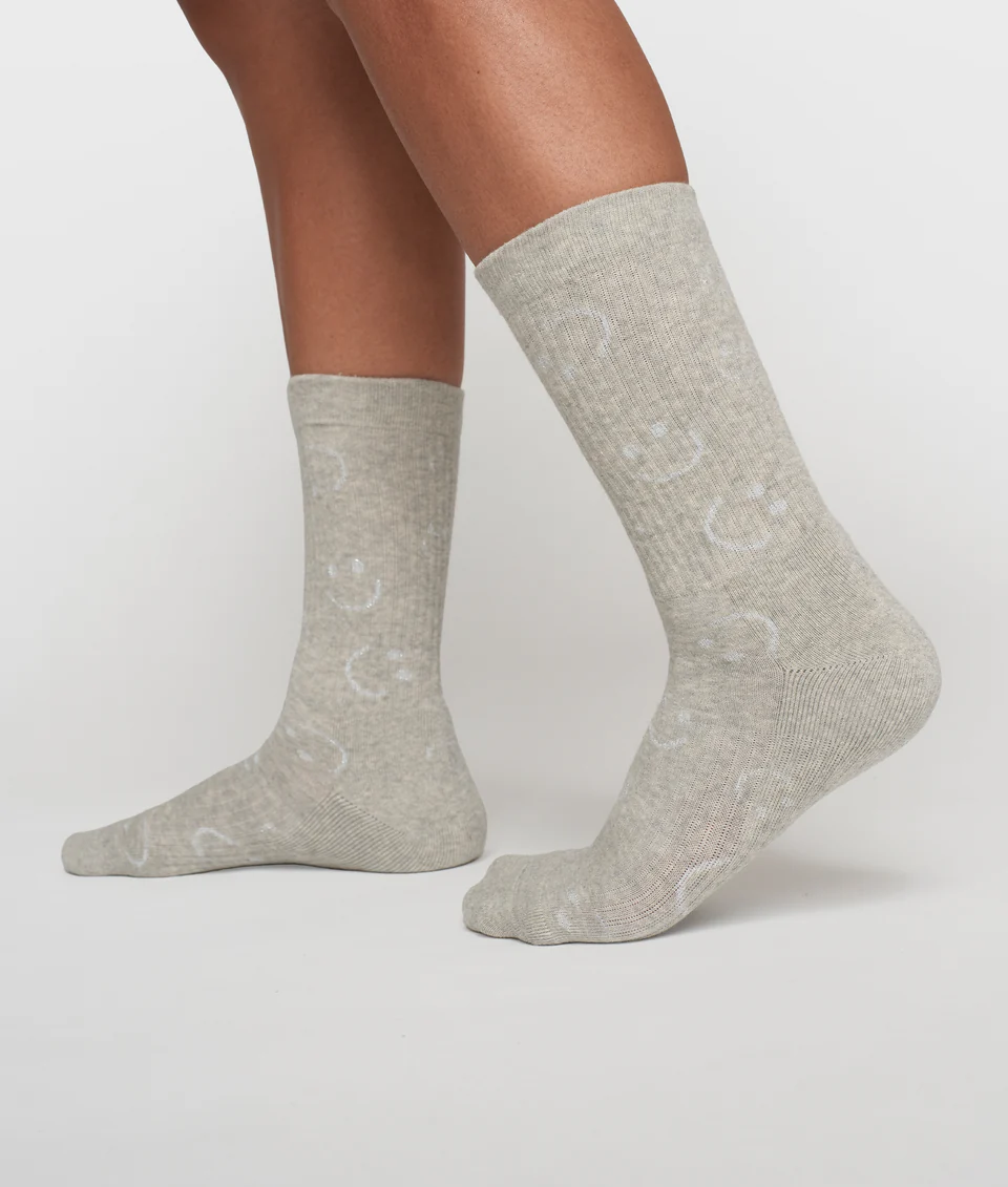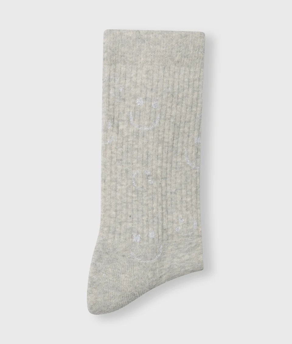 10 Days, licht grijs melee sokken met zilveren smiles.