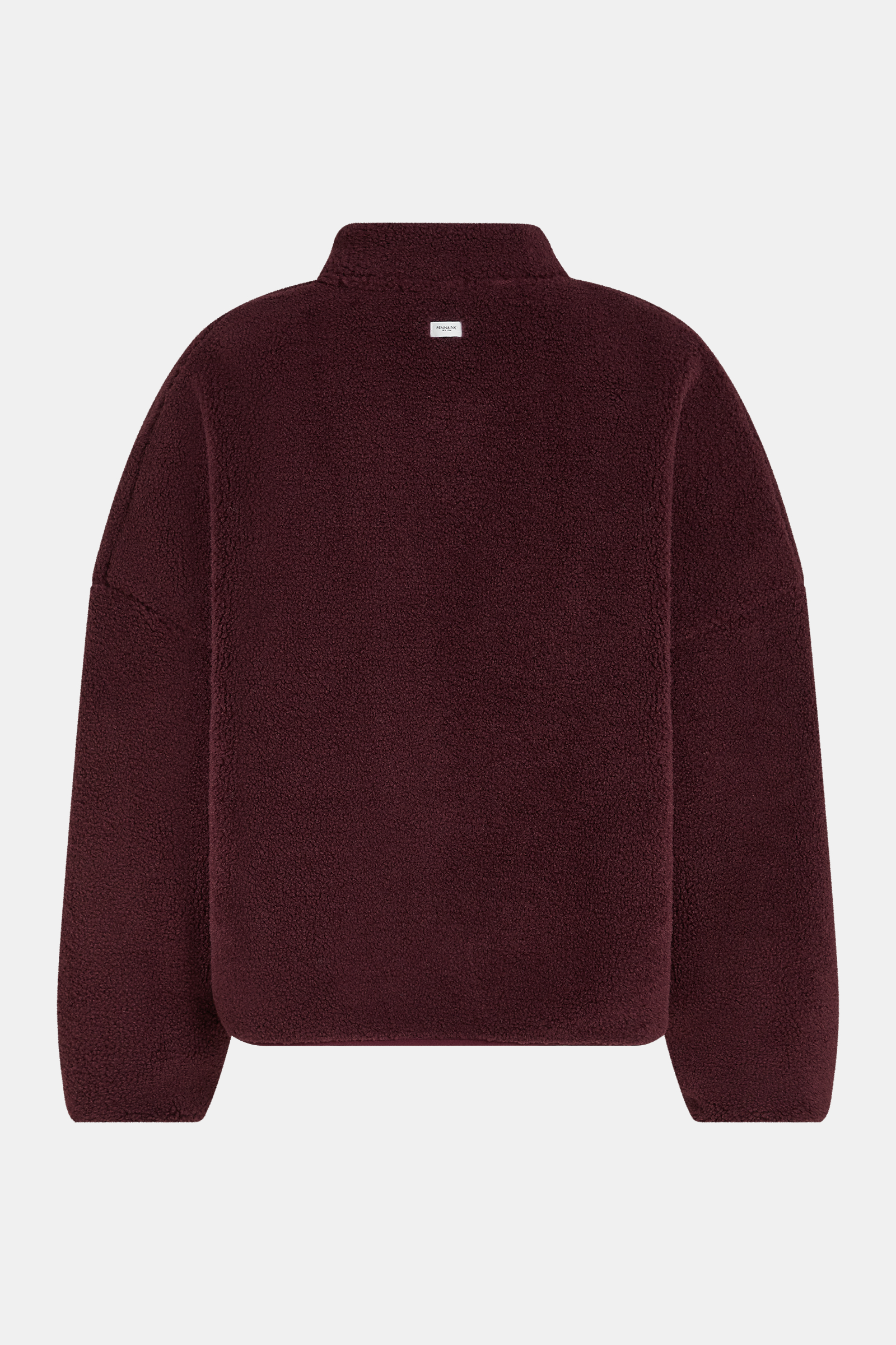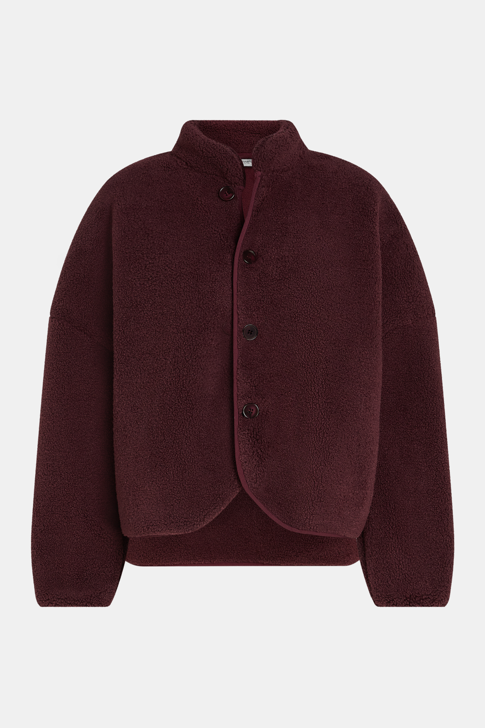 Penn & Ink, bordeaux teddy jas met opstaande boord en knoopsluiting.