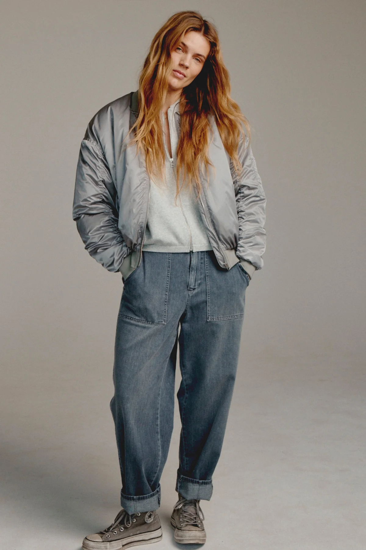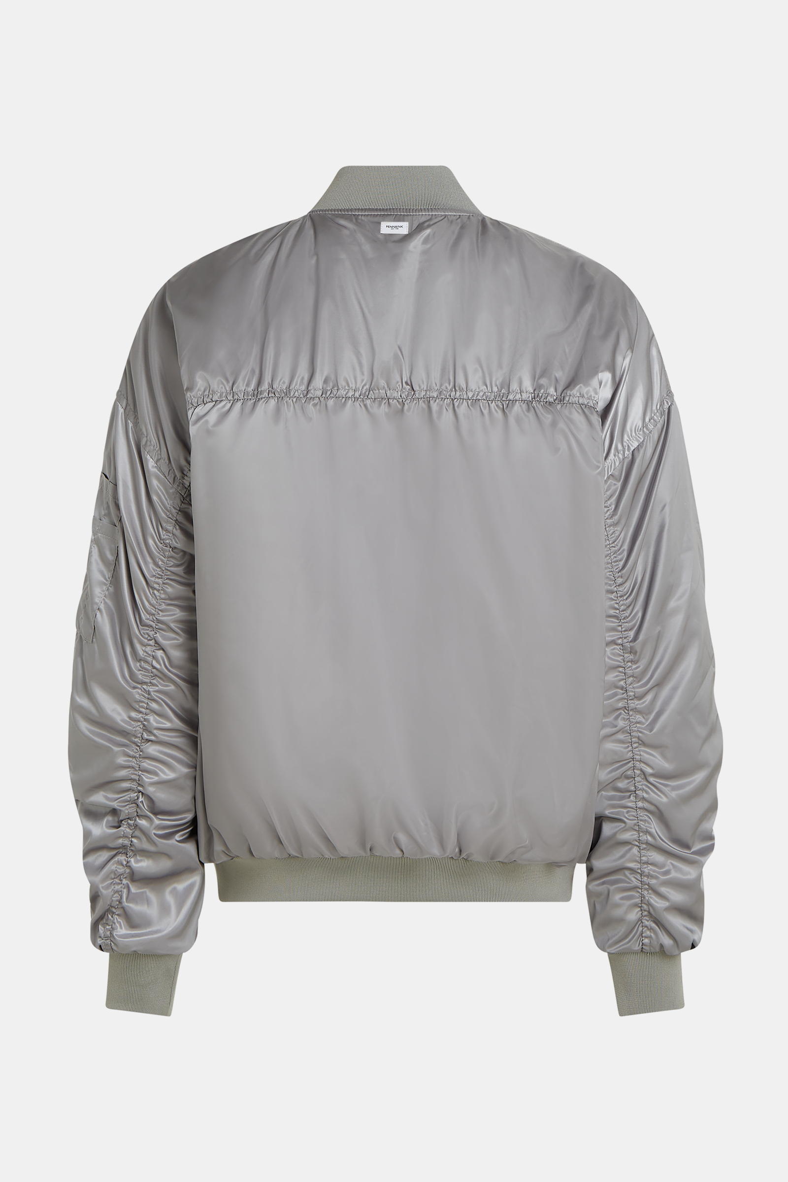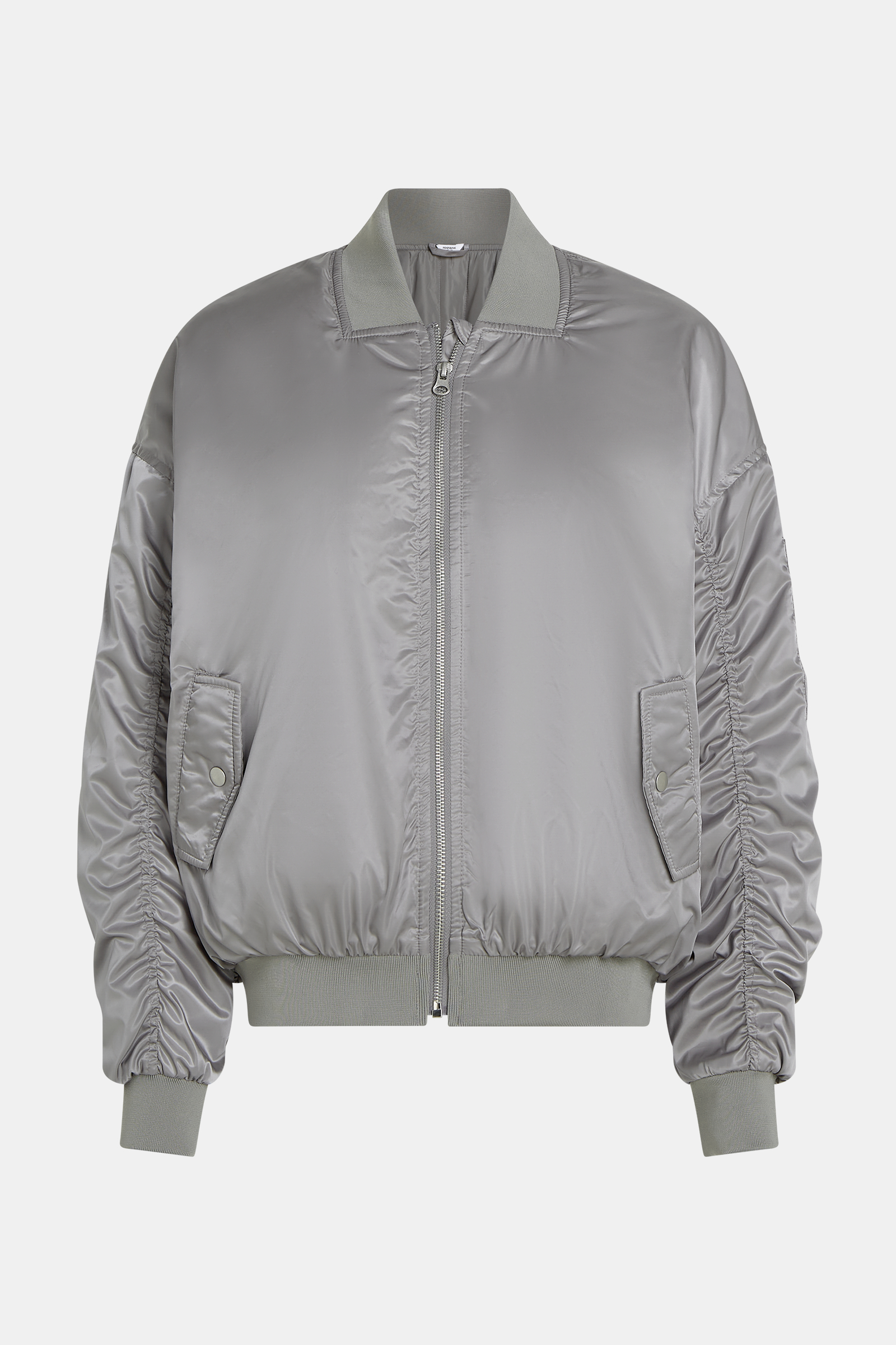 Penn & Ink, gewatteerde, zilver grijze jack met ritssluiting.