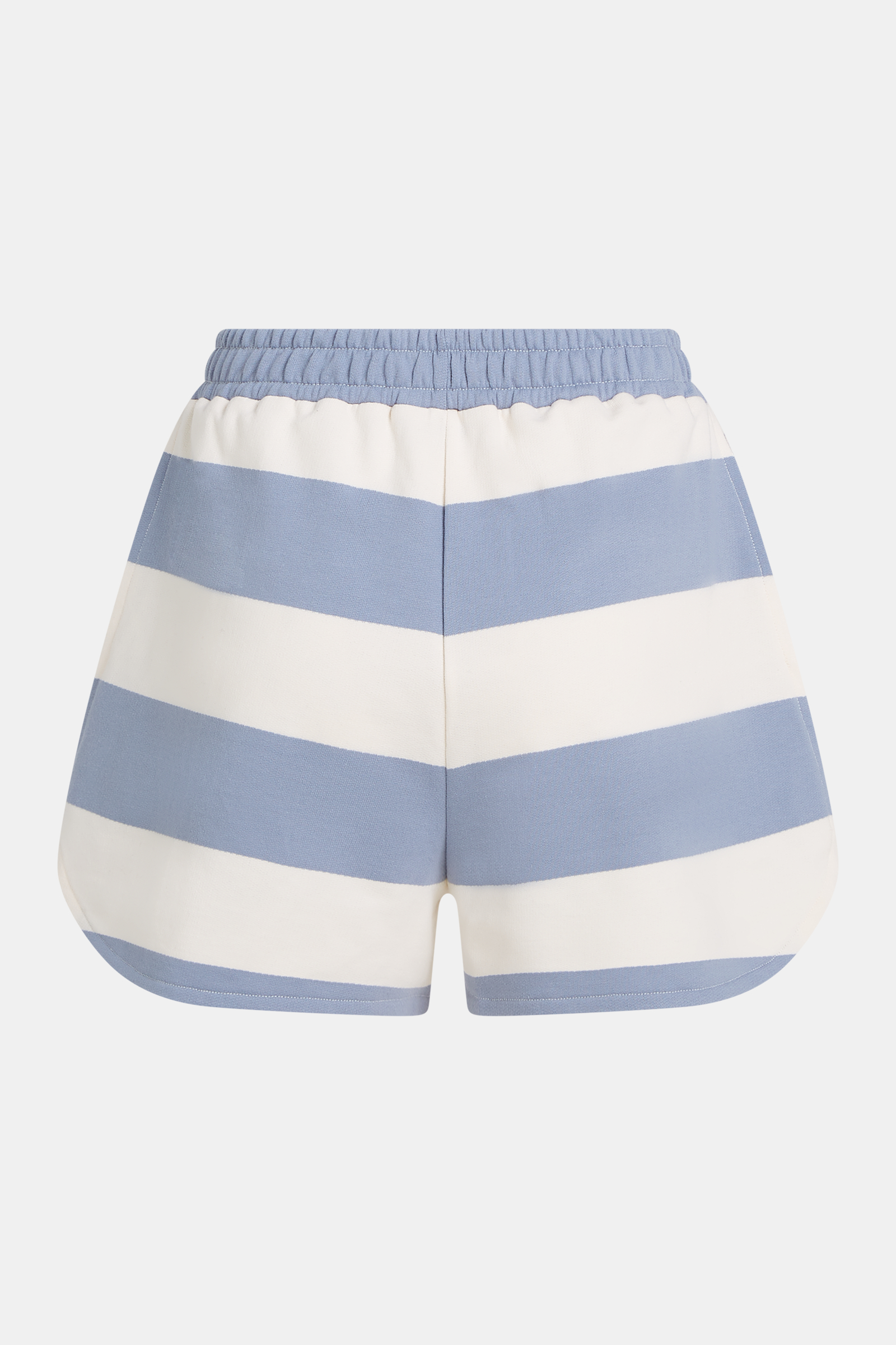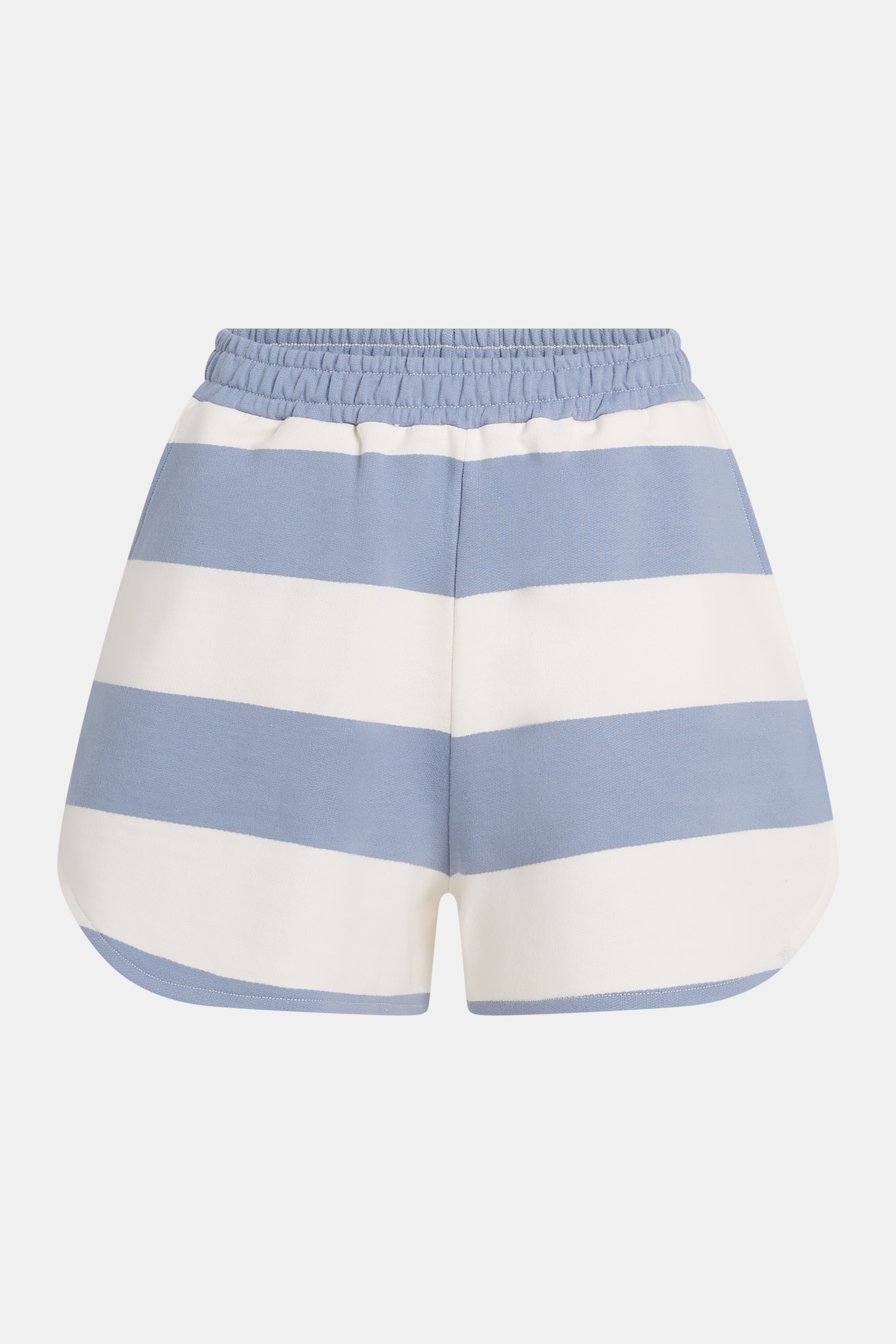 Penn & Ink, licht blauw – ecru streep tricot short met elastische band.